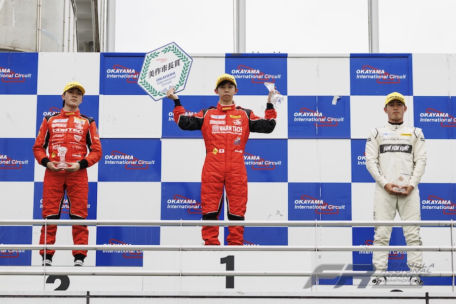 最終的には、小川選手が2位の岩澤選手に7秒591の大差をつけて、ここ岡山ラウンドの最初のレースをポール・トゥ・ウィンで飾り、2位の岩澤選手、3位の金丸選手とともに表彰台を獲得しました。唯一マスタークラスにエントリーしている99号車の近藤善嗣選手(KUJIRA Rn-sports)は、全体の5番手で完走を果たしています。