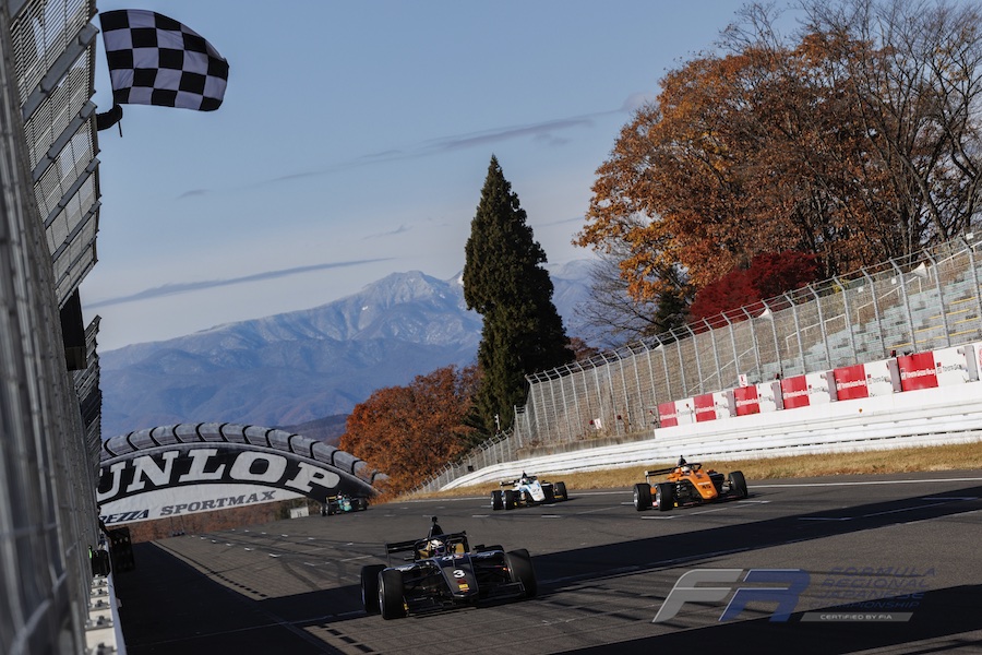 FORMULA REGIONAL JAPANESE CHAMPIONSHIP (フォーミュラ・リージョナル・ジャパニー ズ・チャンピオンシップ =FRJ) 2023のレース15が、11月26日、スポーツランドSUGOを舞台に争われ、3号車の奥住慈英選手(Sutekina Racing)が前日のレース14に続き、2連勝を果たしました。